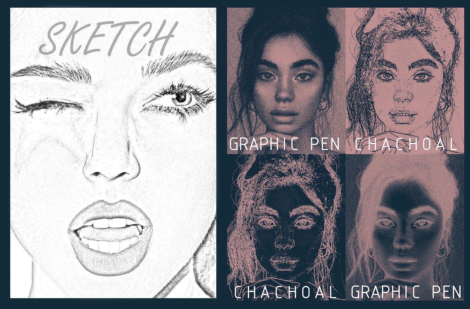 Filter - Filter Gallery - Sketch - Chacoal/Graphic Pen 등 다양하게 활용