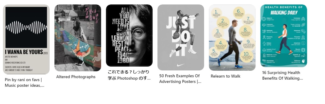 아래는 포스터 제작에 참고한 이미지 소스들. 아이디어가 잘 떠오르지 않을 땐, 핀터레스트나 Behance 등에서 포스터 아이디어를 참고하는 것이 좋다.